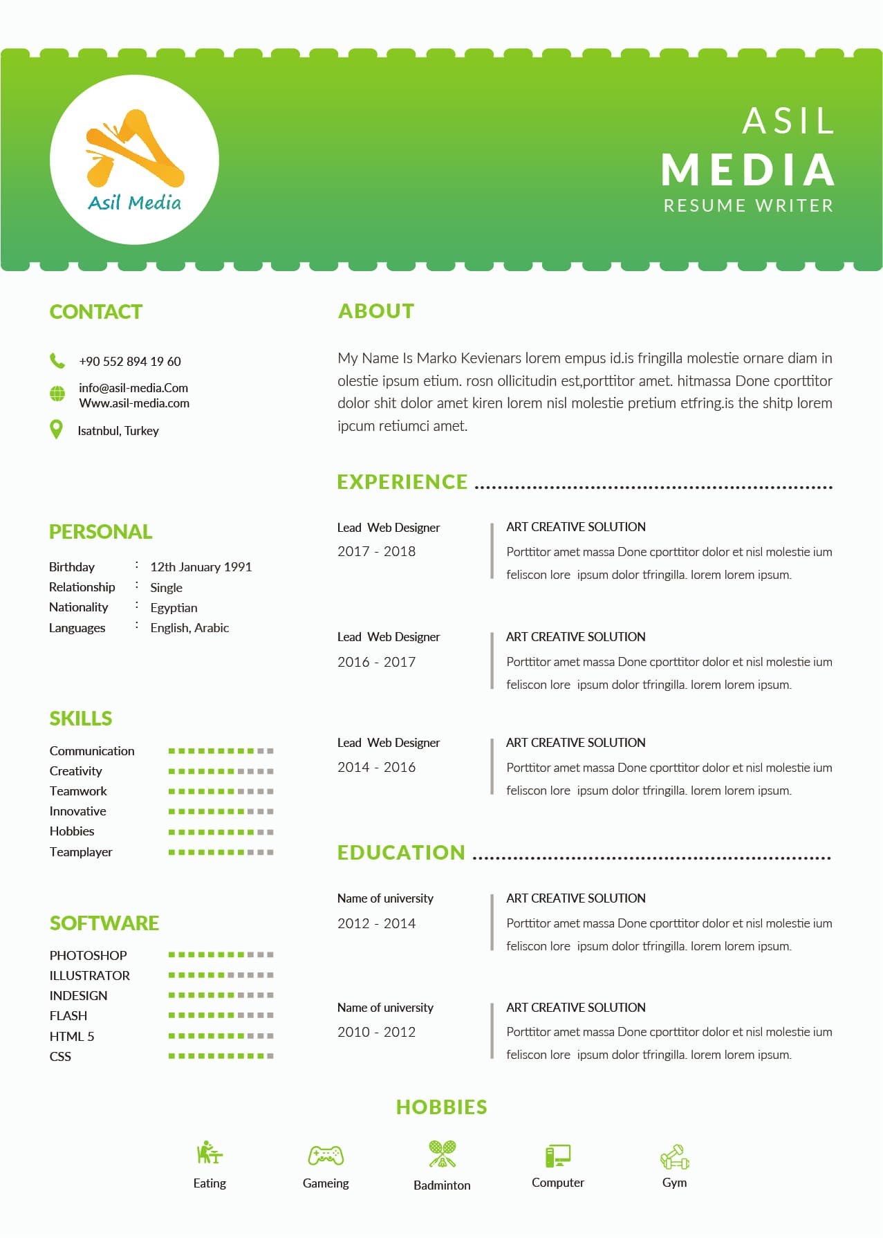 هذه قائمة من عروض الأسعار المقدمة من Asil Media لكتابة وتصميم السيرة الذاتية